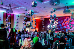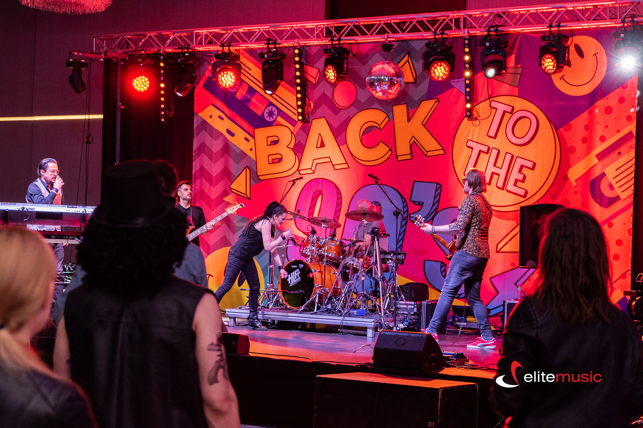 - Dekoracje 90s: Kule dyskotekowe, grafika dużęgo formatu z napisem 90s, Ramy podświetlane z tematycznymi motywami, rollupy z grafiką 90s, kasety dużego formatu, duże cyfry 90s, boomboxy i elementy neonowe.
