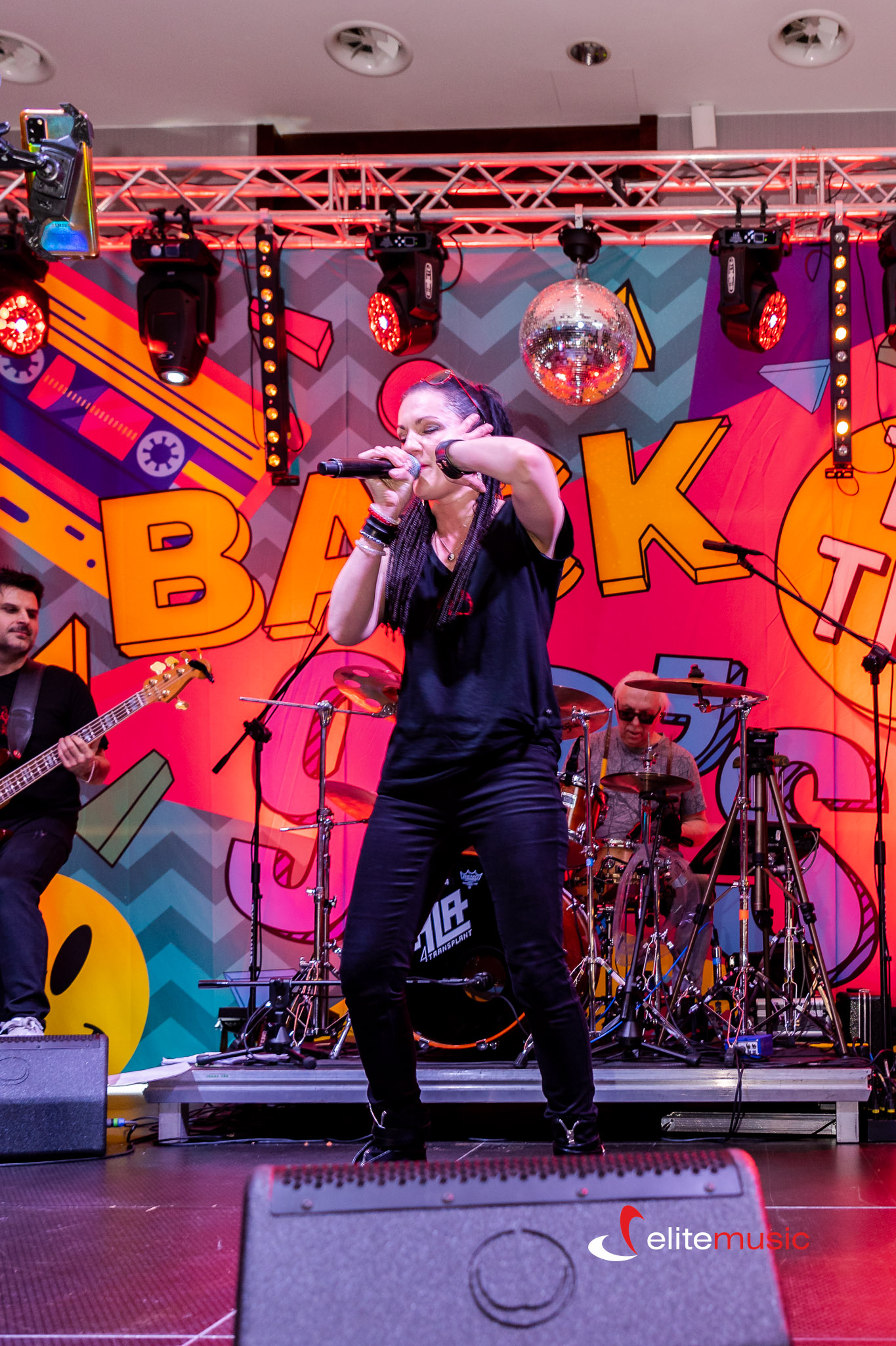 - Dekoracje 90s: Kule dyskotekowe, grafika dużęgo formatu z napisem 90s, Ramy podświetlane z tematycznymi motywami, rollupy z grafiką 90s, kasety dużego formatu, duże cyfry 90s, boomboxy i elementy neonowe.