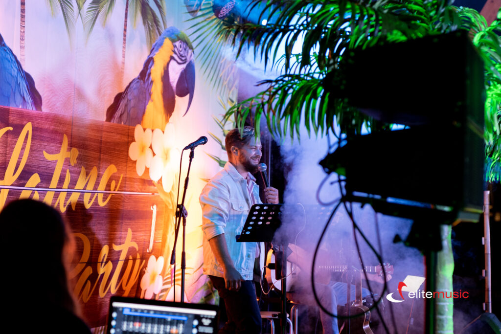 Potrzebujemy nagłośnienie frontowe, trochę wolnego miejsca i dostęp do prądu. Zwykle organizatorzy eventów zapewniają nam także doświetlenie od frontu i kolorowe led kontrowe, ale występujemy w różnych warunkach. W ramach Elite Music dostarczamy kompleksowo technikę i możemy zapewnić zaplecze techniczne w różnych konfiguracjach – od takich na kameralne granie, po pełen set sceno-techniczny z realizacją dźwięku i światła – obsługa techniczna eventów.